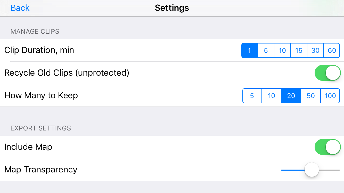 클립 정보에서 인터페이스 사용자 당신의 카메라 롤에 클립 수출할 수 있습니다.. 이러한 내보낸된 클립으로 비디오에 찍힌 날짜/시간 스탬프 및 속도 마커 포함 됩니다. “워터 마크”. 라이트에서 버전 클립 것만 공개 먼저 30 비디오 스트림의 초.