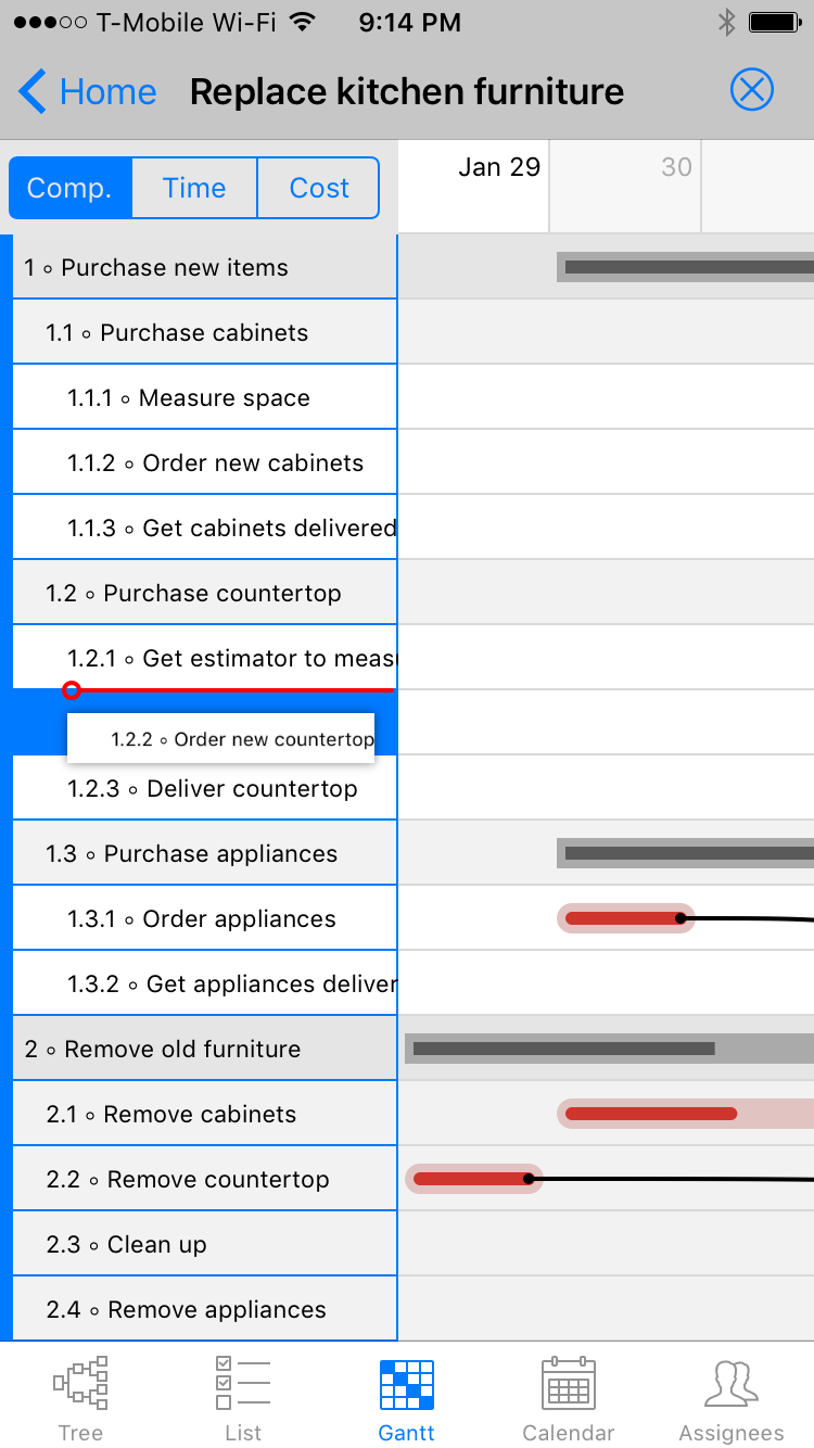 Si voleu editar una tasca en un mode d'arbre – utilitzar un “Aixeta llarg” (per exemple. Doni copets en la tasca i mantenir dit sobre ell un parell de segons).